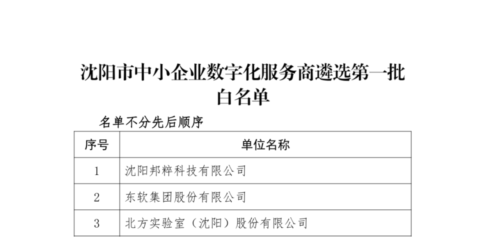 神軟公司成功入選“沈陽市中小企業數字化服務商遴選第一批白名單”公示名單