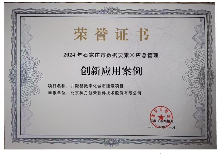 近日,神軟公司承建的井陘縣數字化城市建設項目,榮獲2024年石家莊市數據要素X應急管理創(chuàng)新應用案例獎項。此獎項是依據《“數據要素X”三年行動計劃(2024-2026年)》的要求,由國家數據局、中央網信辦、工業(yè)和信息化部等有關部門聯合通過2024年“數據要素X”大賽選拔。